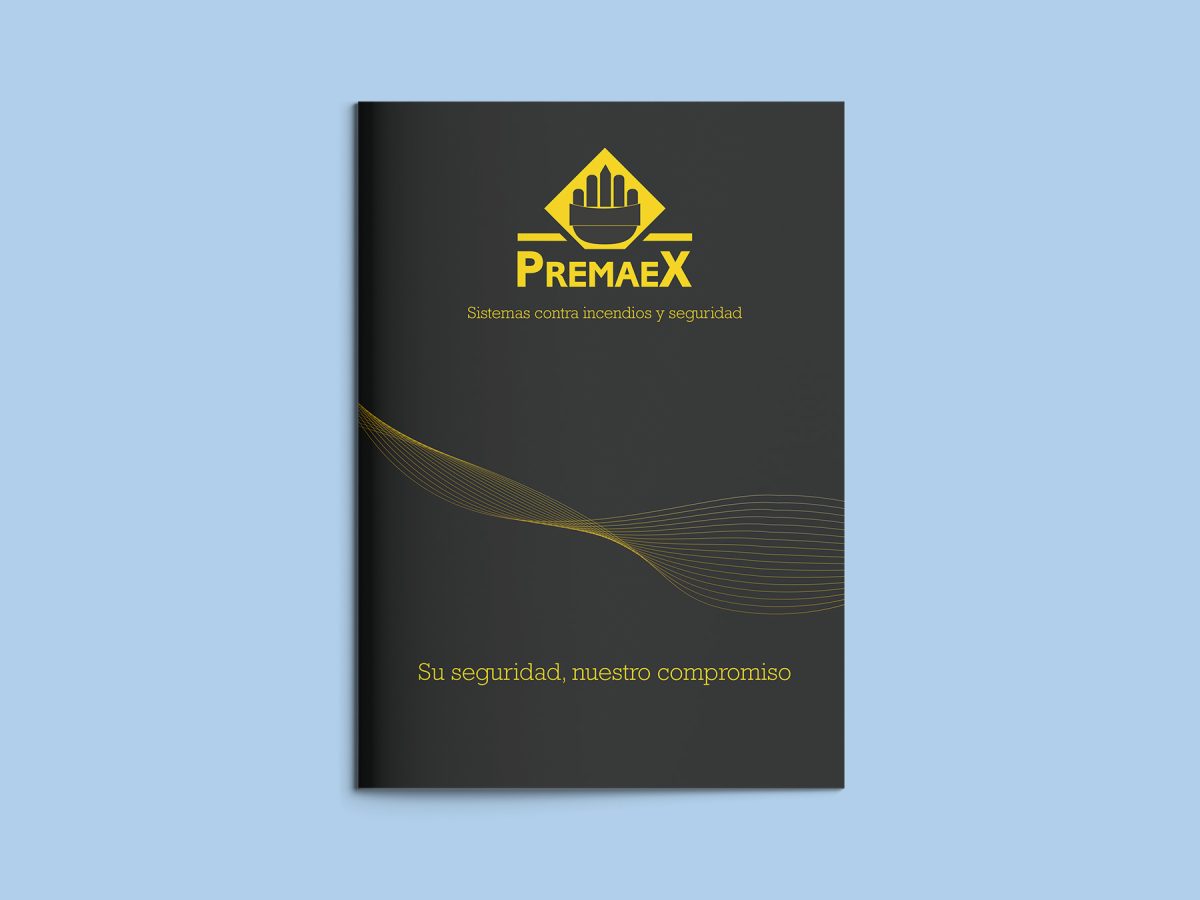 Diseño y composición de catálogo de Premaex, empresa de sistemas contra incendios y seguridad.